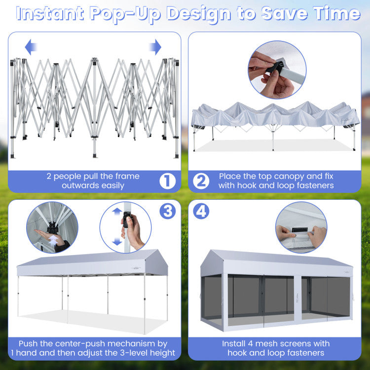 10 x 20 Feet Pop-Up Canopy Party Tent Heavy Duty Garage Car Shelter with Removable Sidewalls and 2-Wheeled Bag