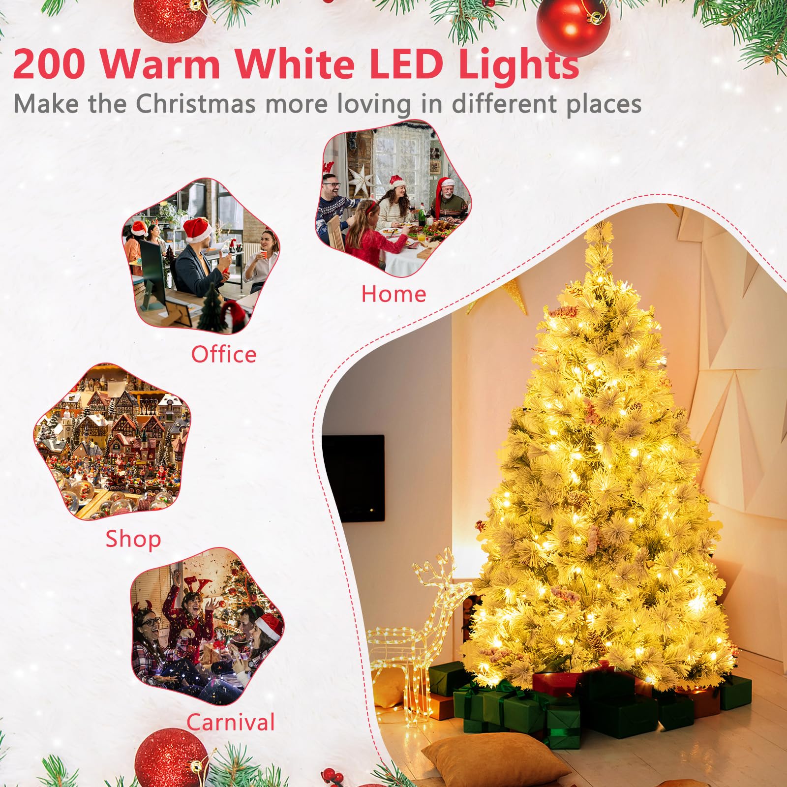 - Warm White Attraction🎄: Its 200 LED lights not only enhance the visual appeal with warm white glow but also create a romantic holiday vibe to evoke your memories of Xmas. By the way, a SAA-certificated adaptor is included to promote the using safety.