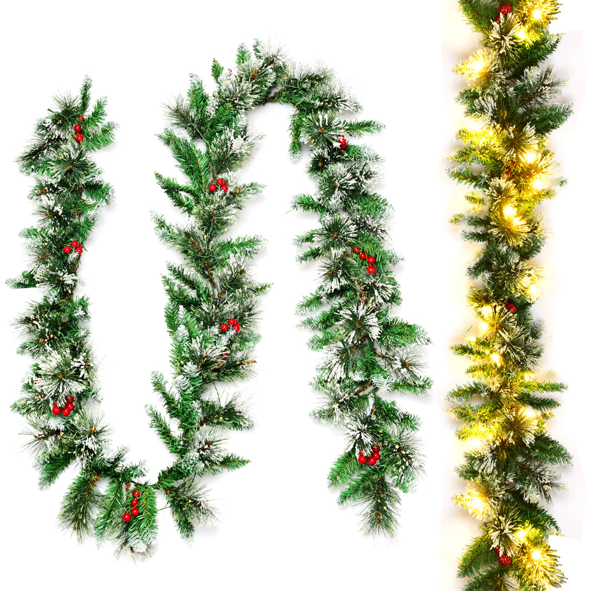 It composes 130 PVC tips, 50 pine needles, red berries, and LED lights, combines different Christmas colors and delivers eye-catching design. Pre strung with 50 warm LED lights which is controlled by 6-hour timer, the Christmas rattan is capable of brightening up your house to let you be immersed in festival atmosphere. It is fairly easy for you to decorate the home with the rattan since it is fully assembled. And you can hang it on wall, window, stair, door and any more places as per your preference. it is worth mentioning that the wreath is made of 100% new PVC material, superior to the recycled material in color and texture, which is also odor free for safe home use.