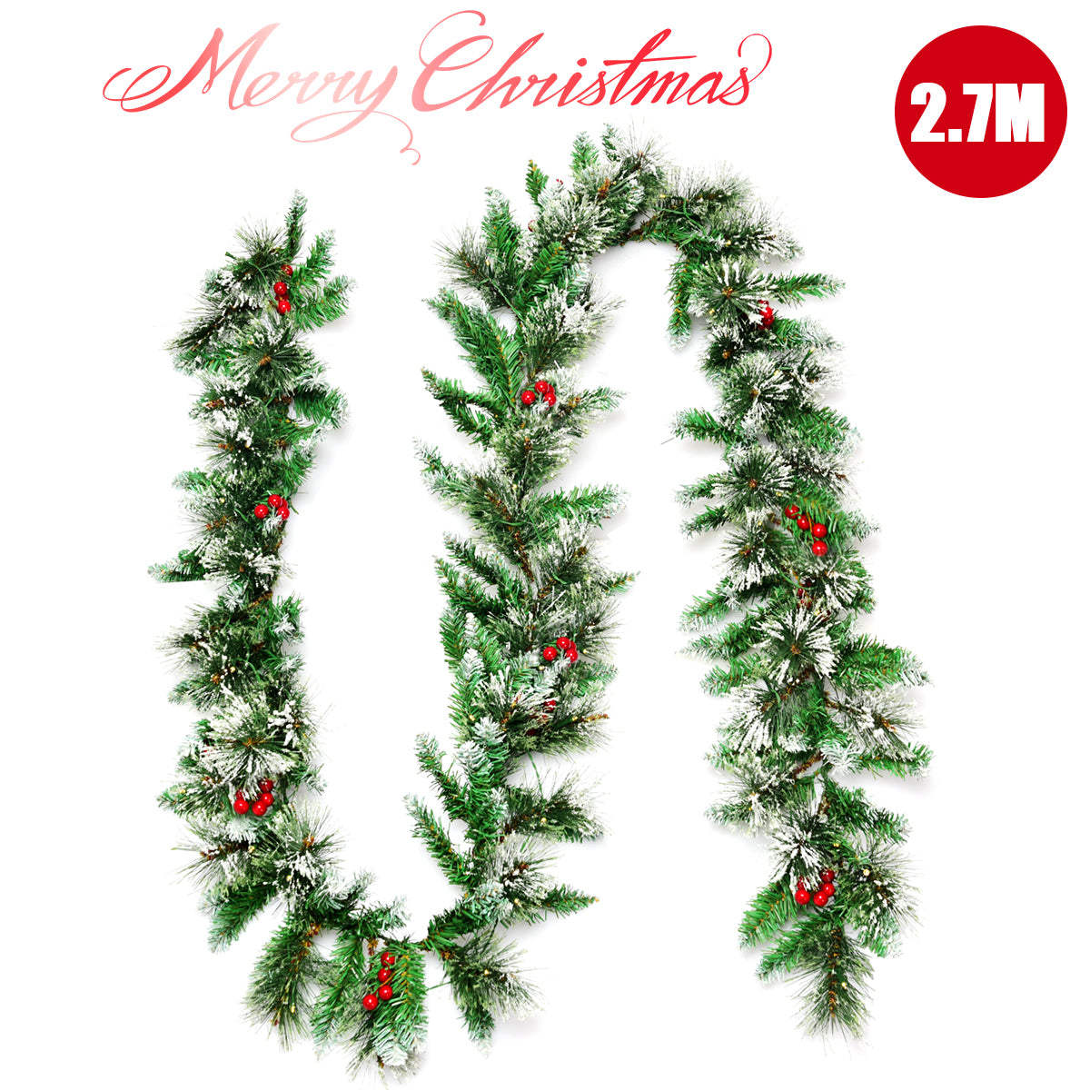 2.7M Artificial Christmas Wreath Rattan with Pine Needles and Red Berries