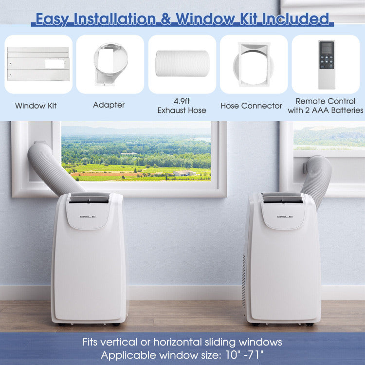 ●Easy To Move and Install: This portable air conditioner features 4 casters and a built-in portable handle, making it easy to move from room to room. What's more, it comes with a complete window kit and detailed installation instructions for easy installation. This air conditioning unit fits any vertical and horizontal sliding windows (height/width: 10"-71").