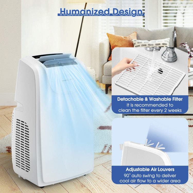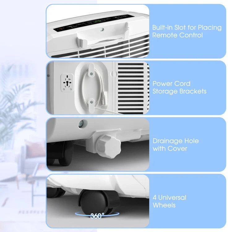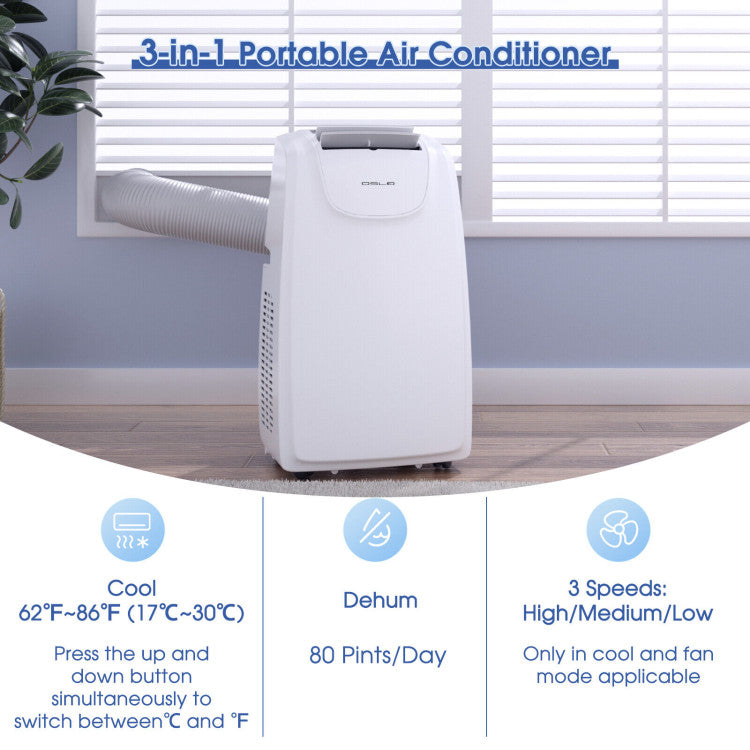 The 3-in-1 Portable Air Conditioner with Cooling Fan Dehumidifier Function is a versatile appliance that can help you stay comfortable in hot and humid weather. This portable unit combines the functions of a traditional air conditioner, a cooling fan, and a dehumidifier into a single device. With a cooling capacity of up to several thousand BTUs, it can quickly cool down a room of moderate size. Additionally, the unit features a fan-only mode for air circulation and a dehumidifier function that can remove excess moisture from the air, making the room more comfortable and less prone to mold and mildew. The compact and lightweight design of this portable air conditioner makes it easy to move from room to room, and it is a great solution for those who want to cool or dehumidify multiple spaces without the expense of installing a central air conditioning system.