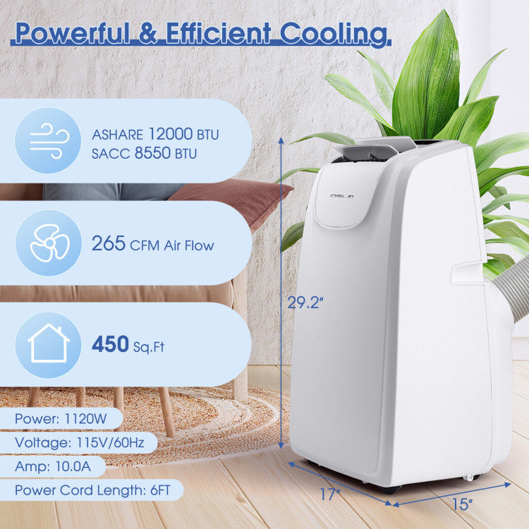● Amazing cooling capacity: This portable air conditioner has a high cooling capacity of 10000 BTU (6150 BTU DOE SACC standard)/12000 BTU (8550 BTU DOE SACC standard)/12000 BTU (8550 BTU DOE SACC standard), which can effectively cool down 350/ 450/700 sqft great room. The adjustable temperature range is 62℉~86℉/ 17℃~30℃ (Fahrenheit and Celsius can be switched freely by pressing the "Up" and "Down" buttons at the same time).