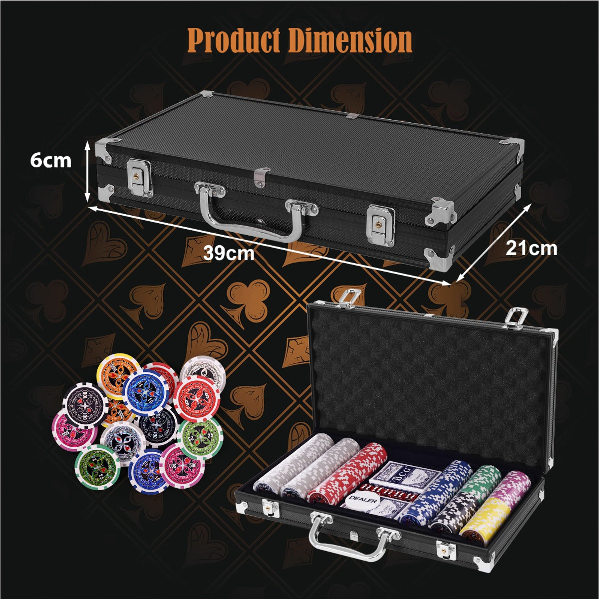 - Durable Material: The poker set is mainly made of high-quality plastic, which is wear-resistant and durable. Therefore it is very robust and can be used for many years. The aluminium case is waterproof, corrosion-resistant and wear-resistant.