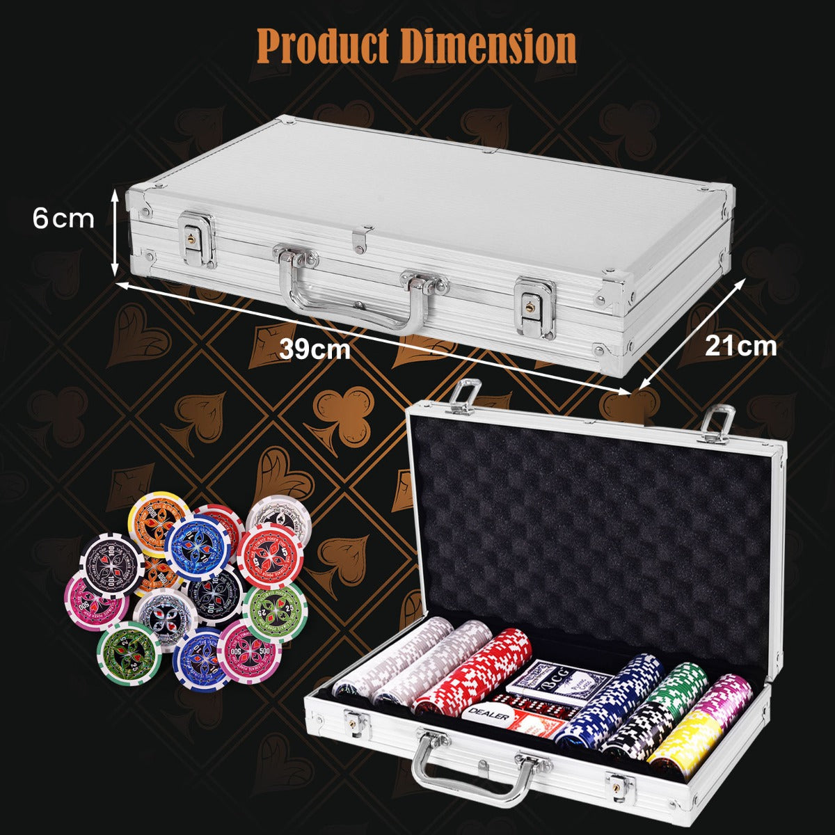300 Pieces Casino Poker Chip Set with Aluminum Case for Party Game
