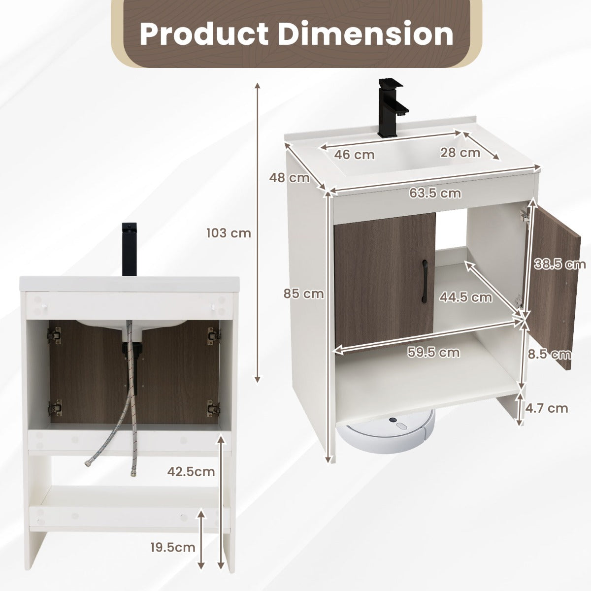 63.5cm Bathroom Vanity Sink Combo with Doors Shelf Backsplash