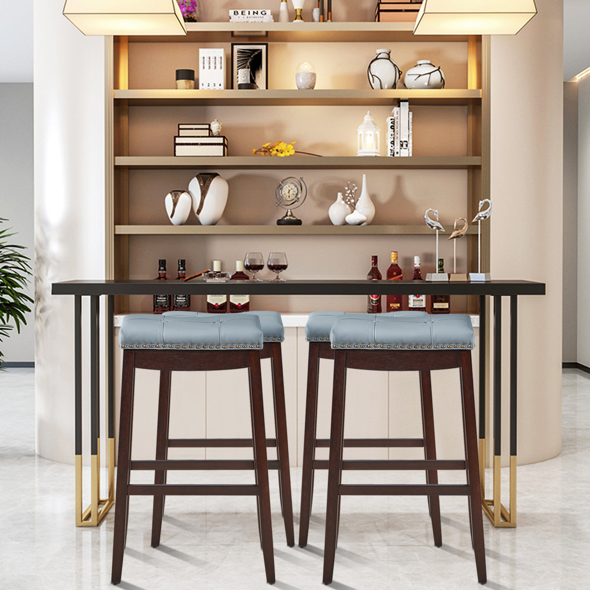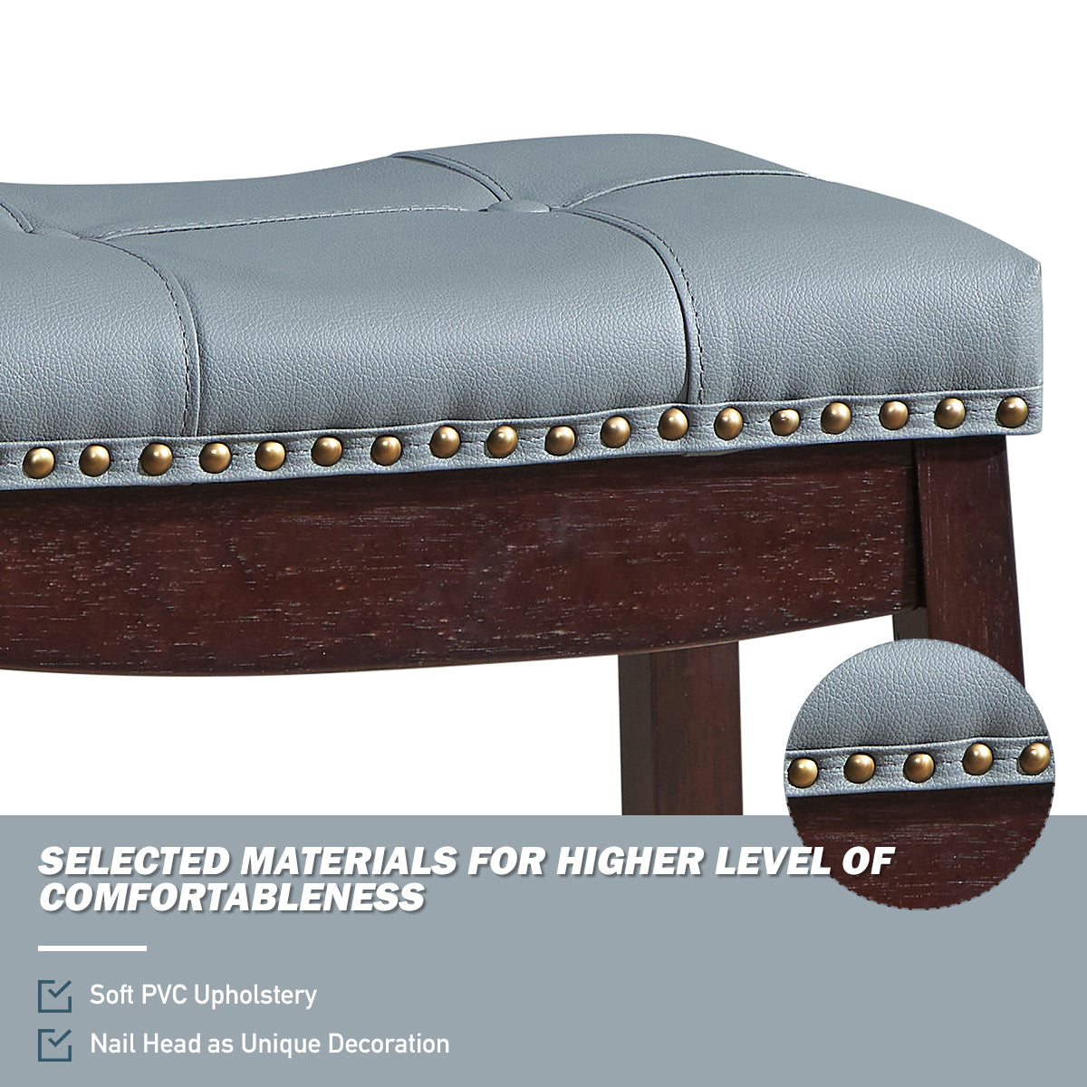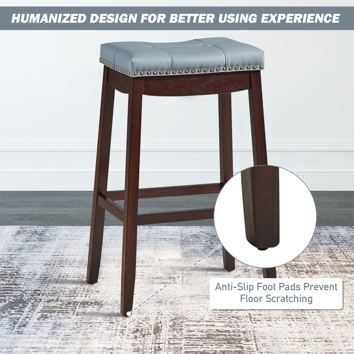 74cm Backless Nailhead Bar Stool with Natural Rubber Wood Legs for Dining Room