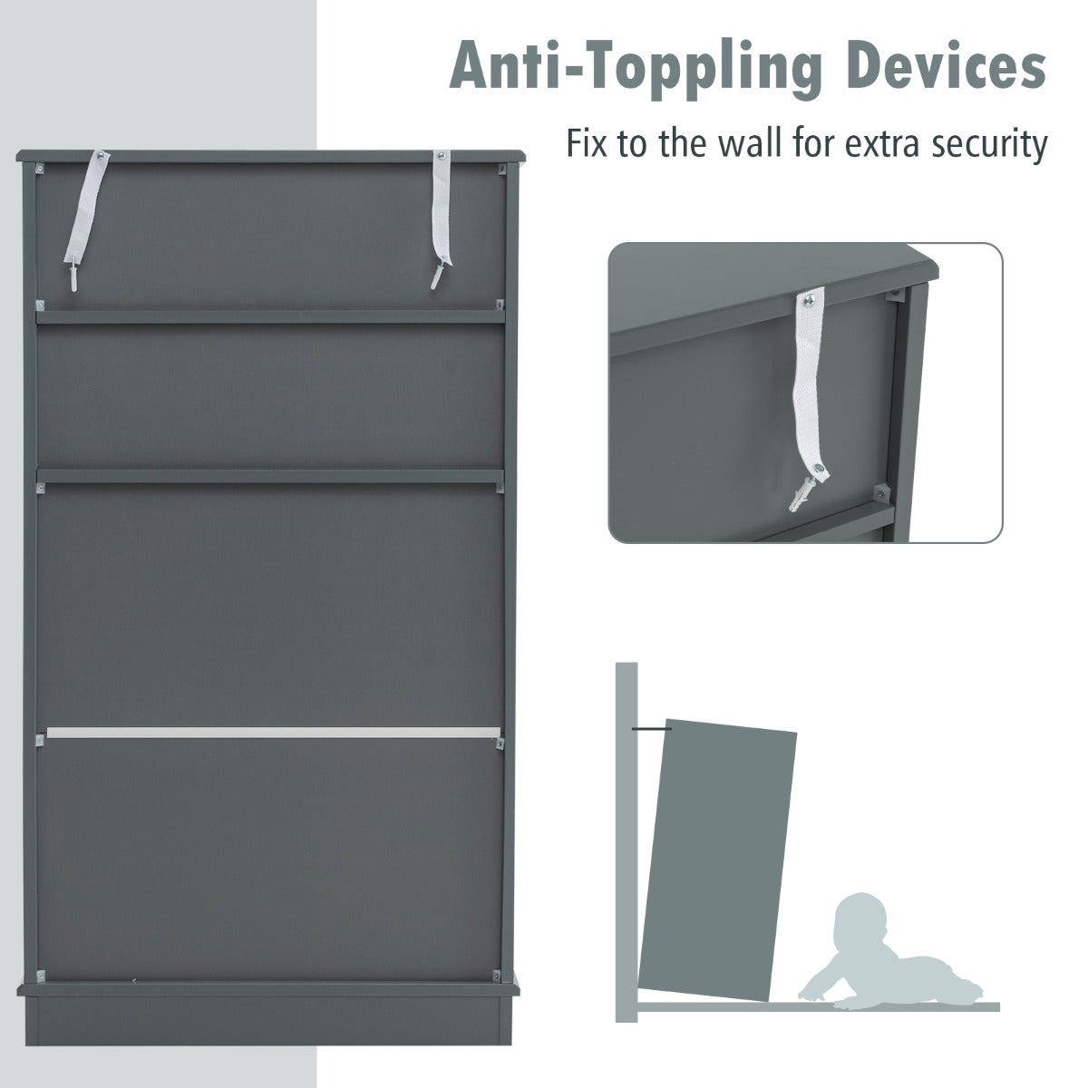 This bathroom storage cabinet features both open and enclosed storage space, which is equipped with a spacious tabletop, an open storage compartment, 2 drawers and a cabinet for you to store various items. Besides, the shelves inside the cabinet can be adjusted to 3 heights according to your storage needs. Moreover, you are allowed to attach this storage organizer to the wall with included anti-toppling devices.