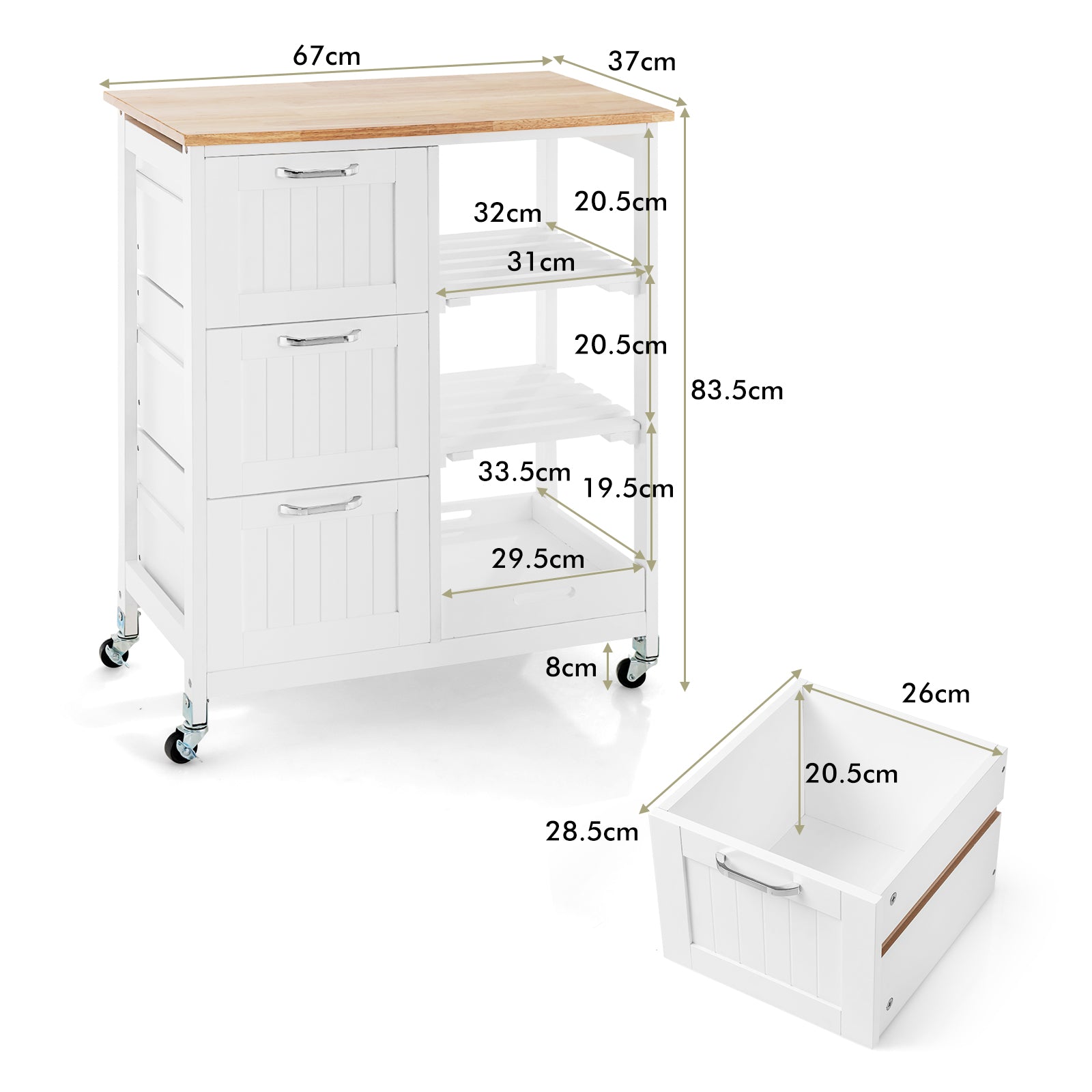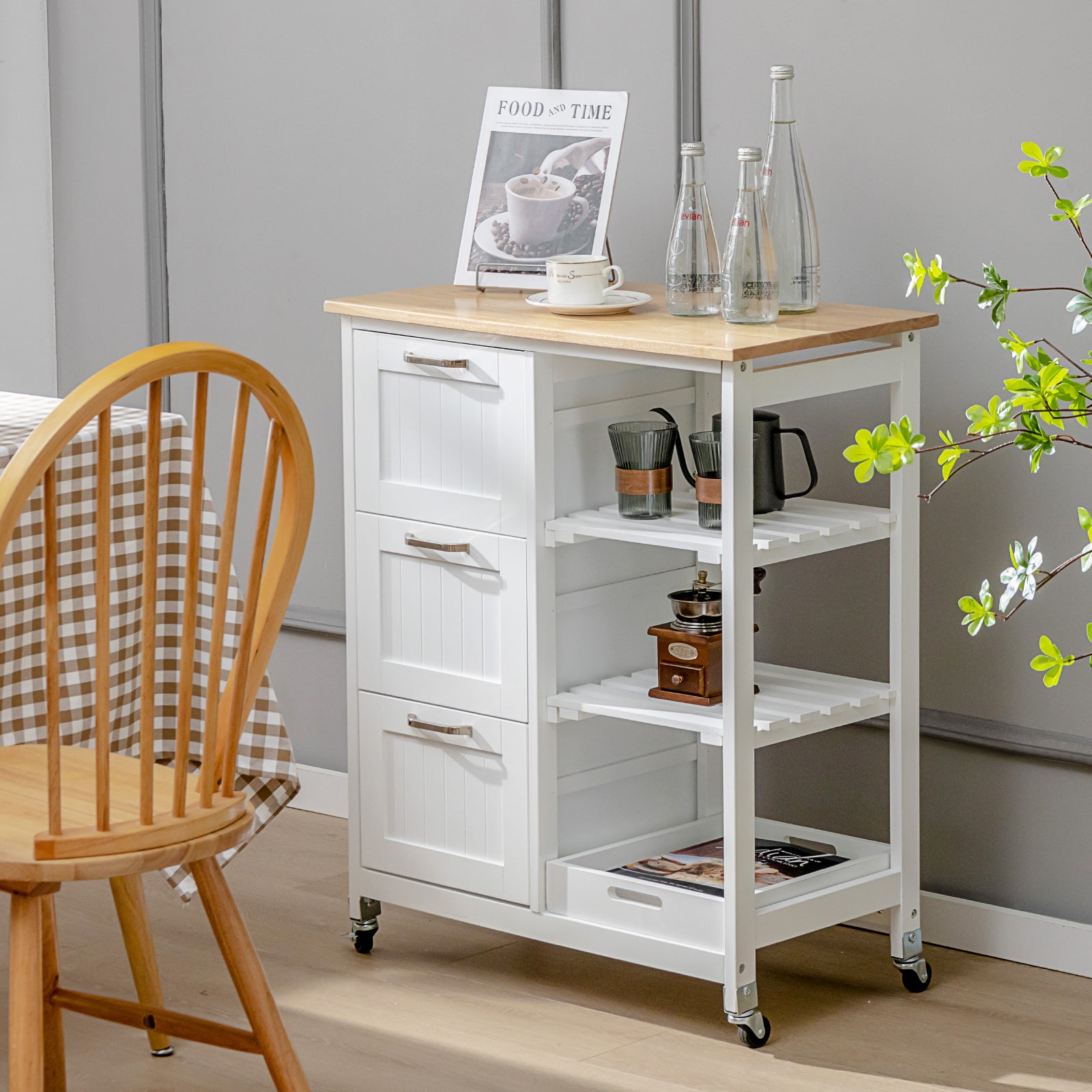 - Solid Structure for Years of Use: The rubber wood countertop and solid wood frame endow the utility storage cart with remarkable sturdiness and stability, providing you with long service time. The painted surface is smooth and waterproof, which makes daily maintenance much easier.