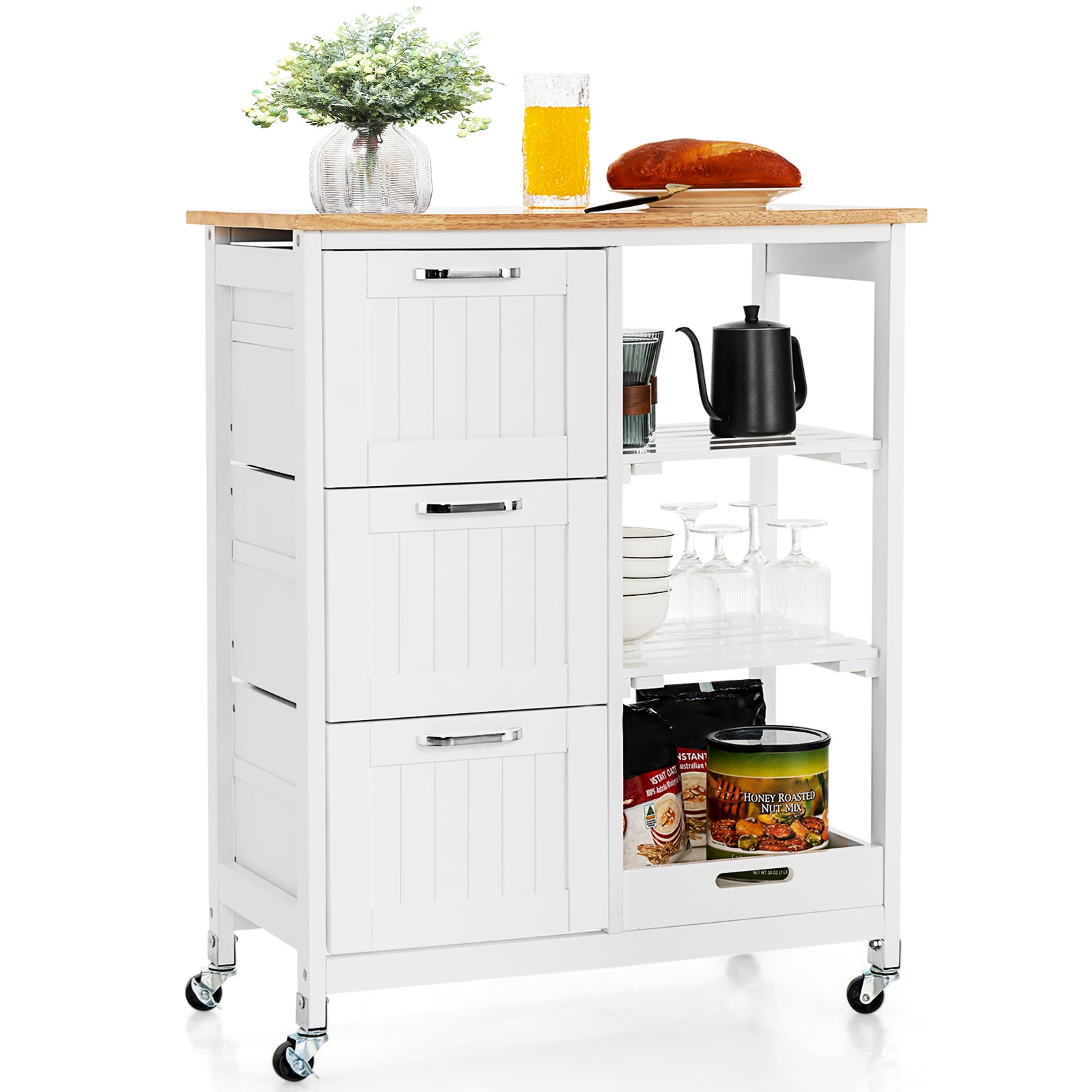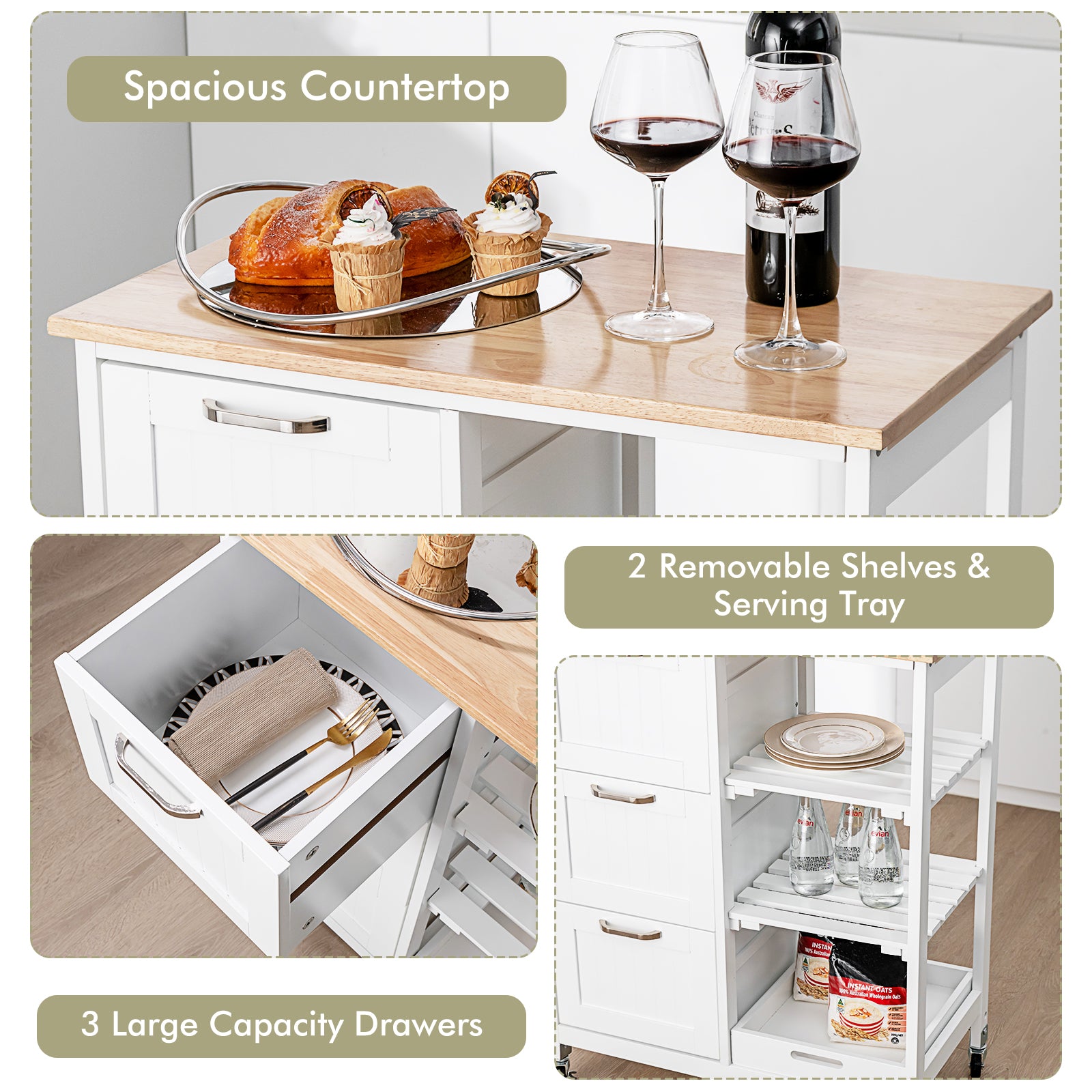 Kitchen Island with Rubber Wood Countertop & Lockable Casters