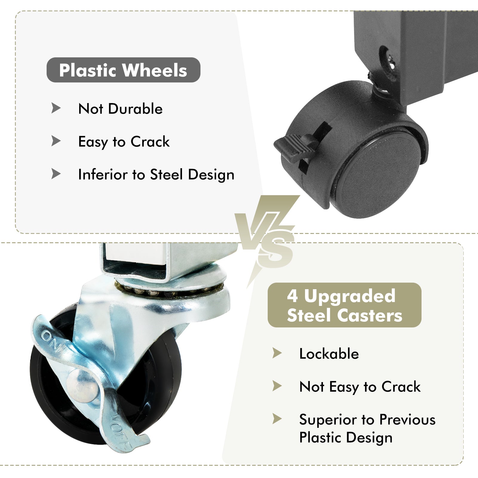 - Effortless Mobility & Safe Parking: The kitchen serving trolley is equipped with 4 heavy-duty steel universal casters, so you can move the cart anywhere you want to relocate it. Additionally, 2 of the casters are lockable. Once it is in position, just step on the brakes to keep the trolley stable.