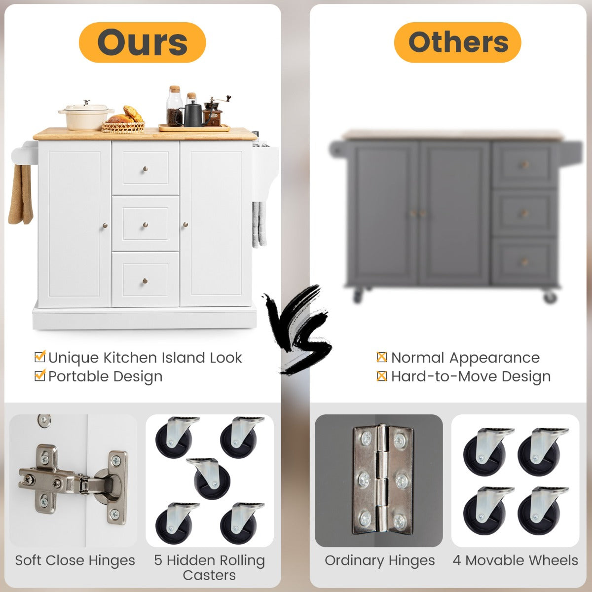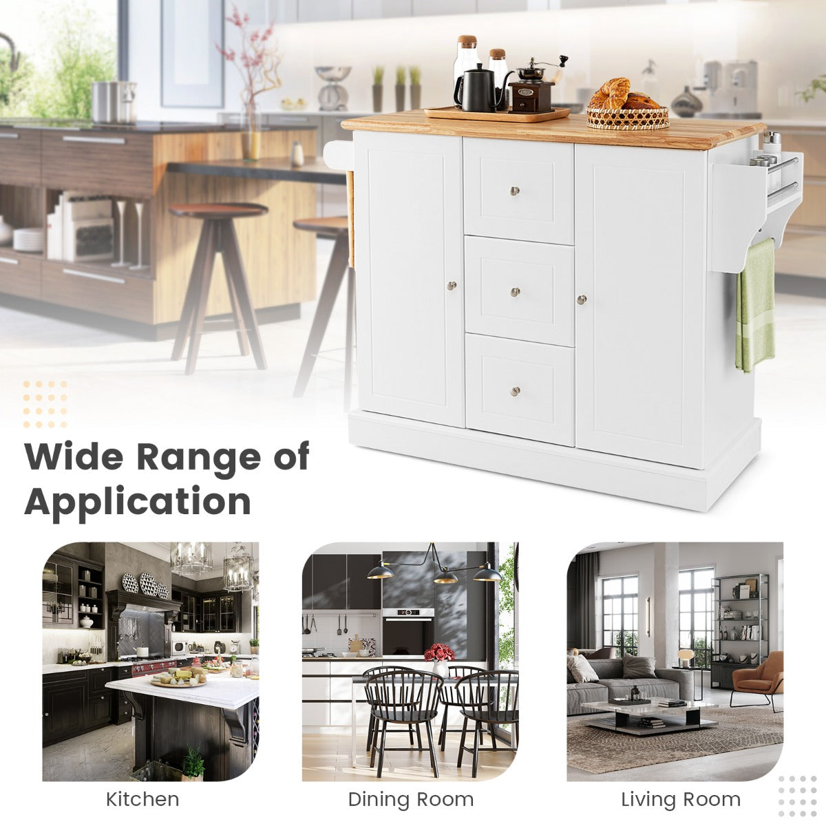 Large Mobile Kitchen Island Cart with 3 Drawers & 2 Enclosed Cabinets