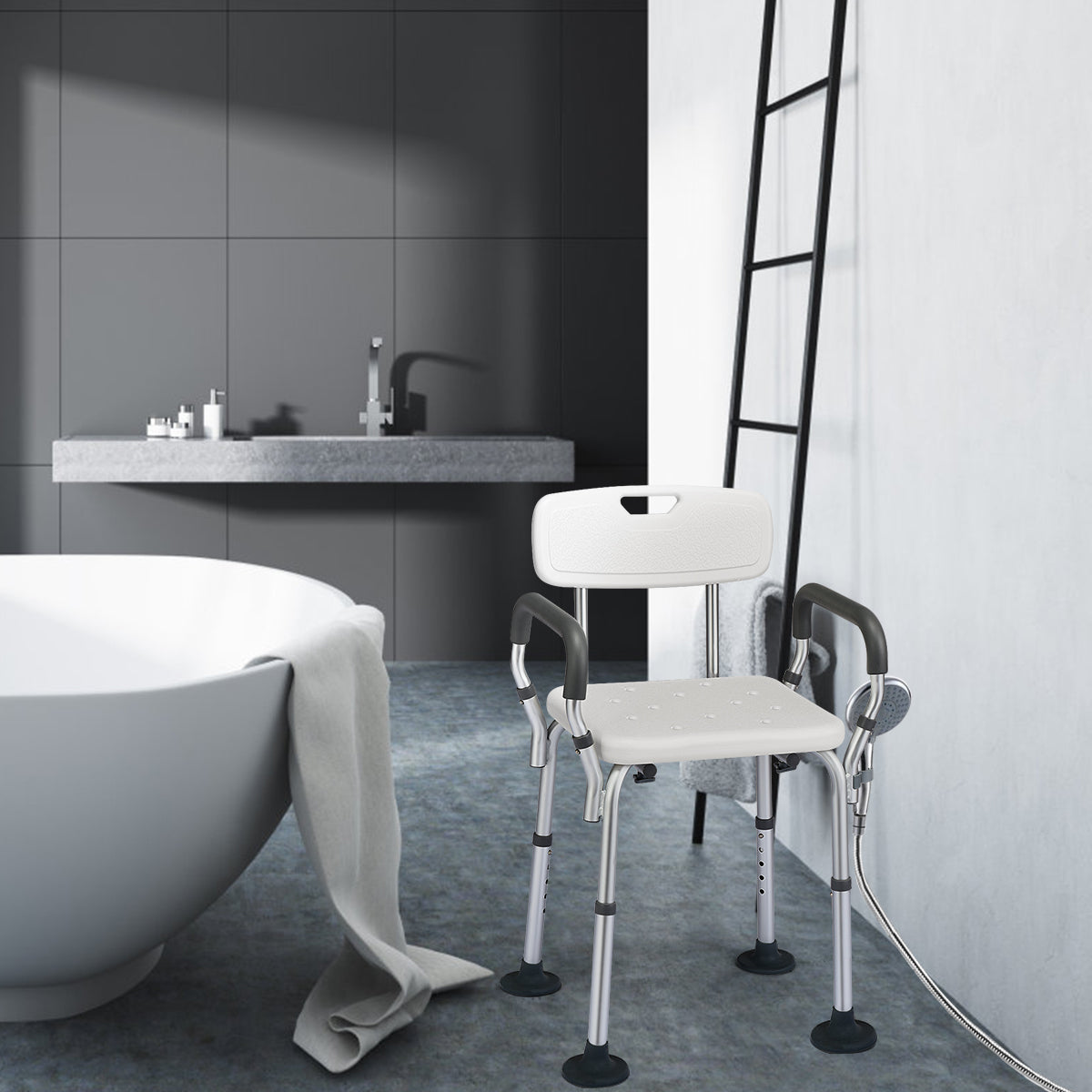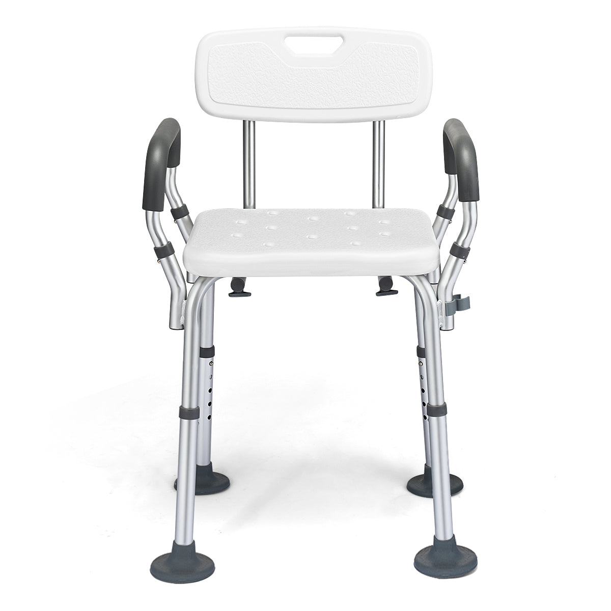 Non-Slip Height Adjustable Shower Chair with Removable Back and Padded Arms