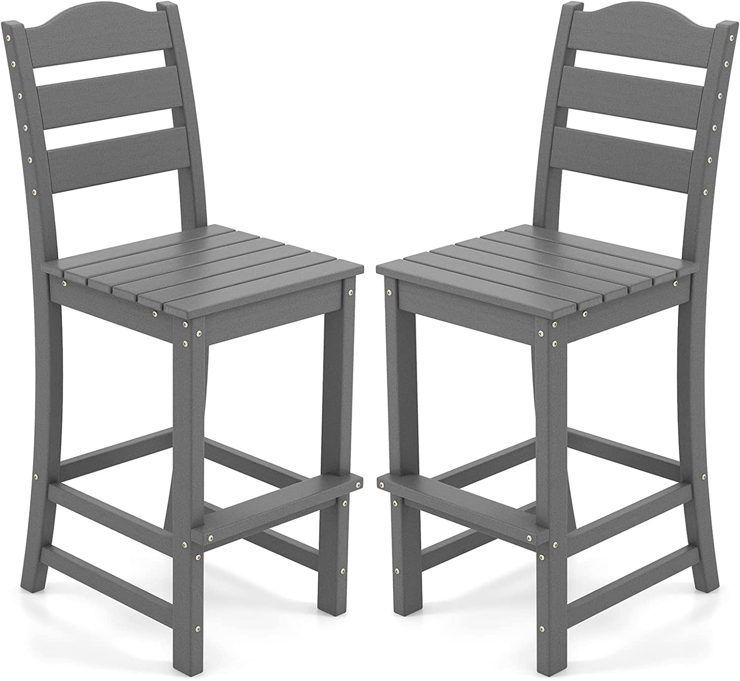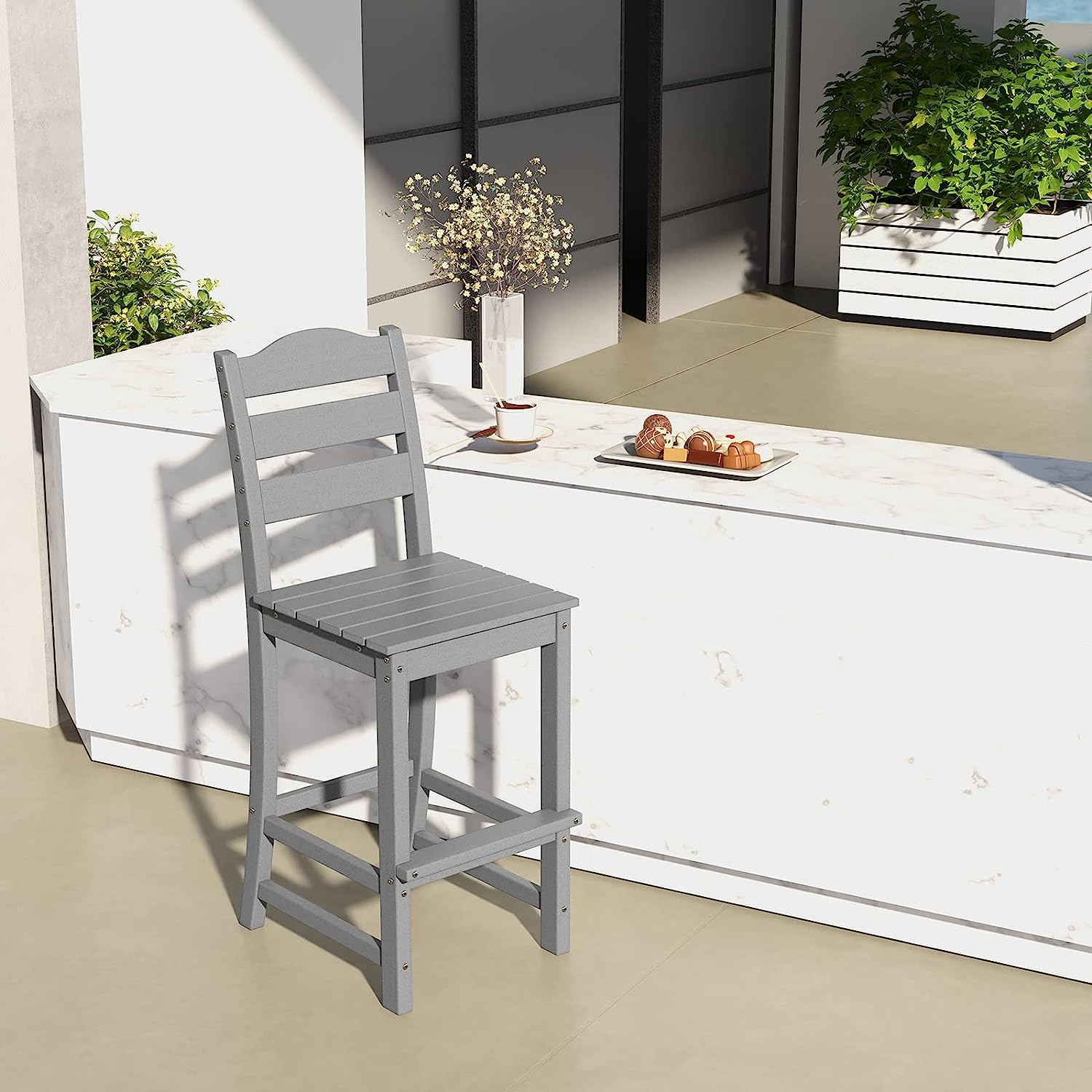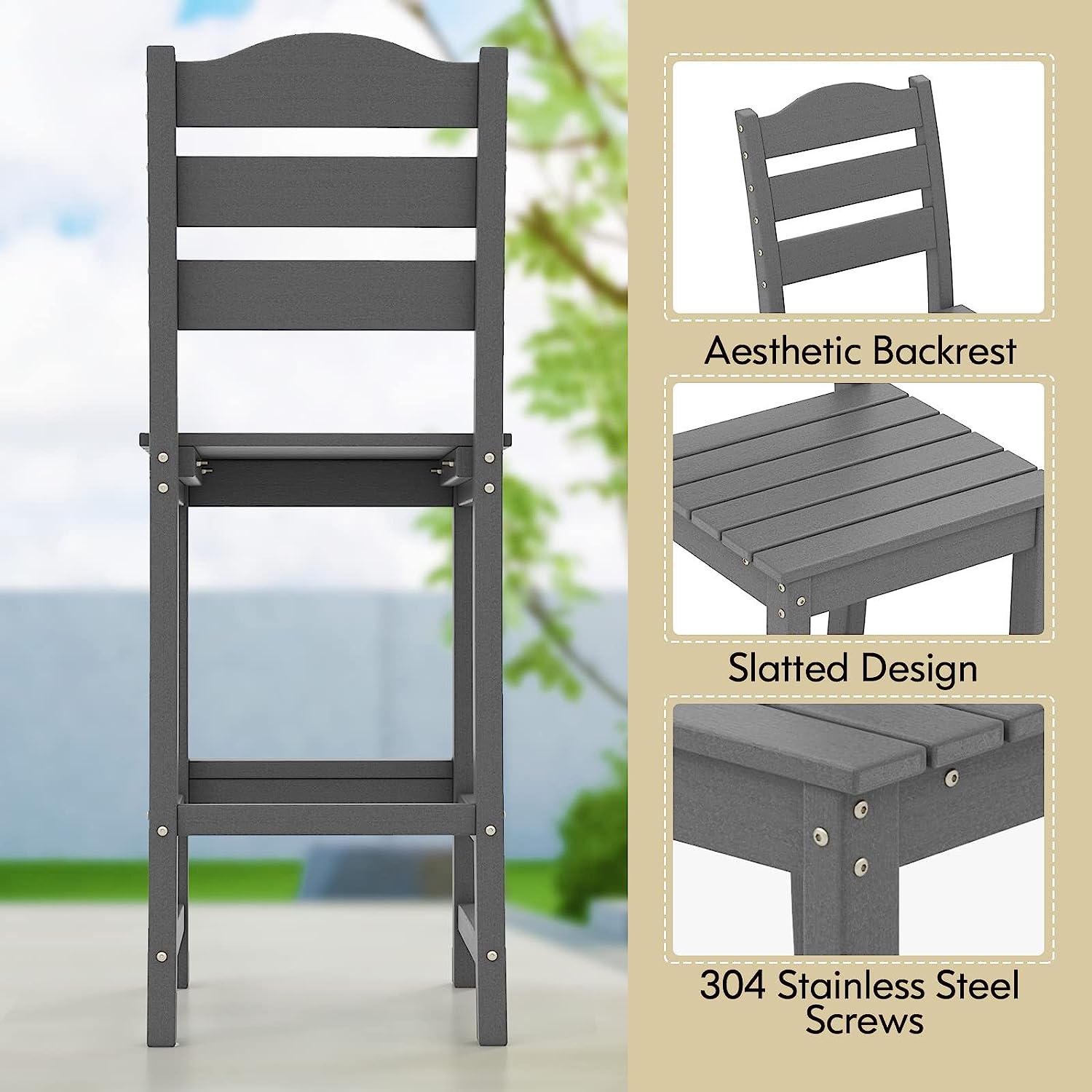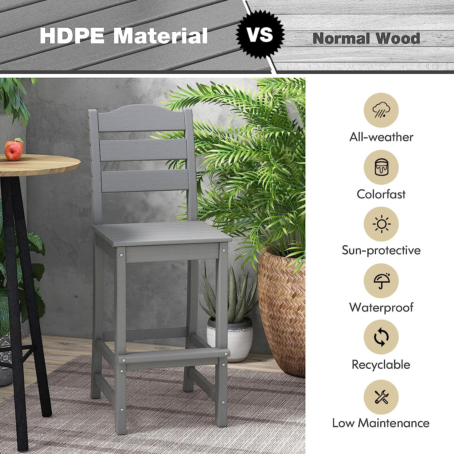 Outdoor All-Weather HDPE Bar Stool Patio 30 Inches Counter Height Bar Chair with Backrest and Footrest