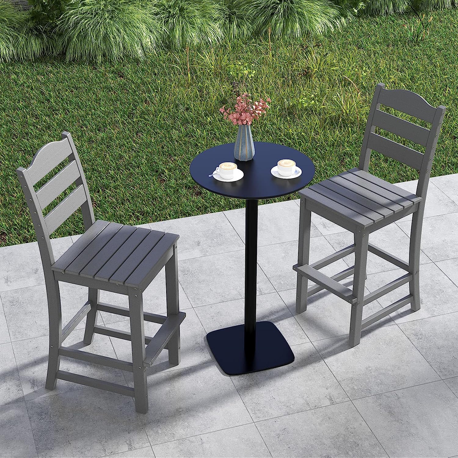 Tired of constantly changing your outdoor chairs? Now, with our HDPE bar stools, this problem will be solved in no time! HDPE material is different from wood and metal, anti-crack, anti-rust, weather-resistant, sun-proof, and non-fading, and has almost all the advantages of being resistant to outdoor environments. Also, it does not require painting, staining, waterproofing or other similar maintenance, just clean with soapy water, which is very convenient. In addition to durability and maintenance, this outdoor bar stool offers a comfortable sitting experience with its curved backrest and wide footrest.