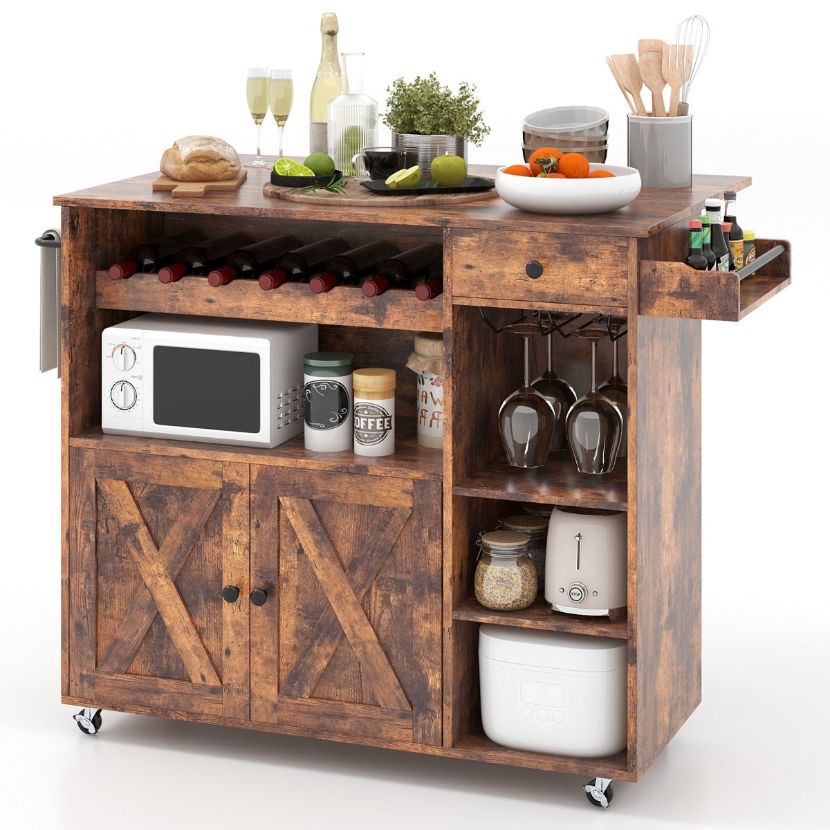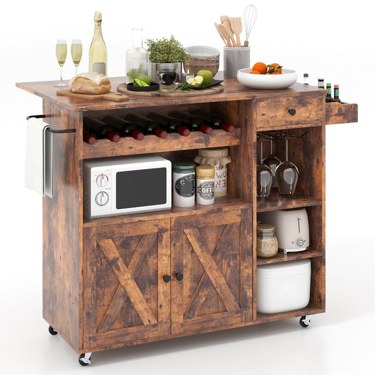 Rolling Kitchen Island Cart with Wine Rack, Stemware Holder, Towel Rack and Spice Rack