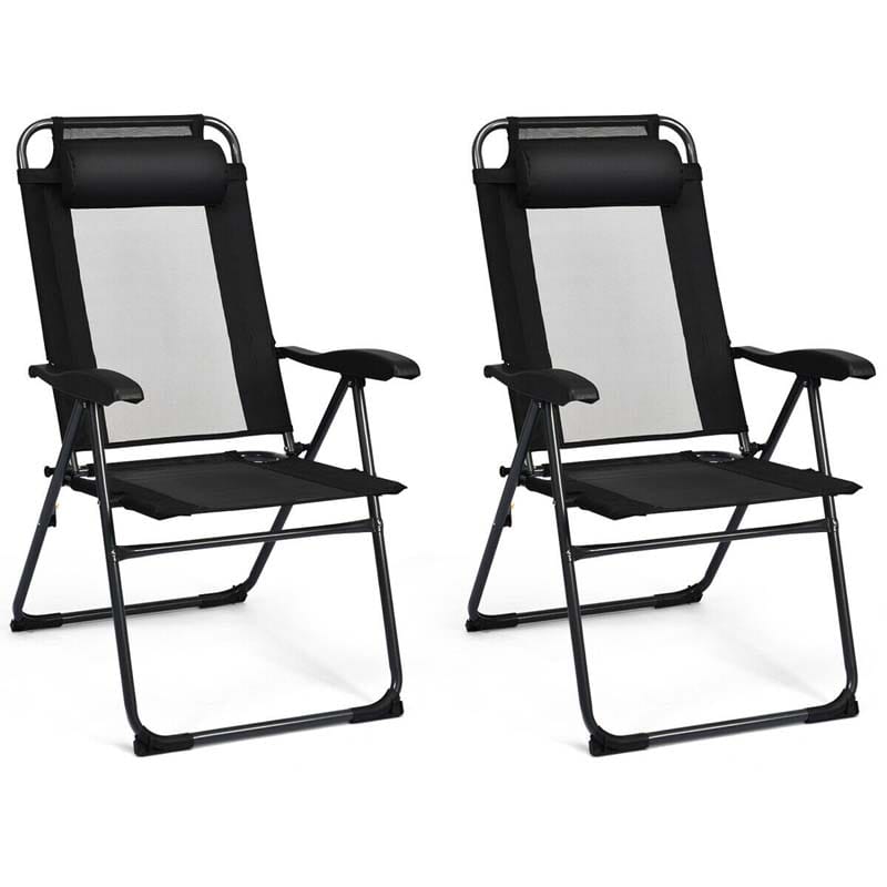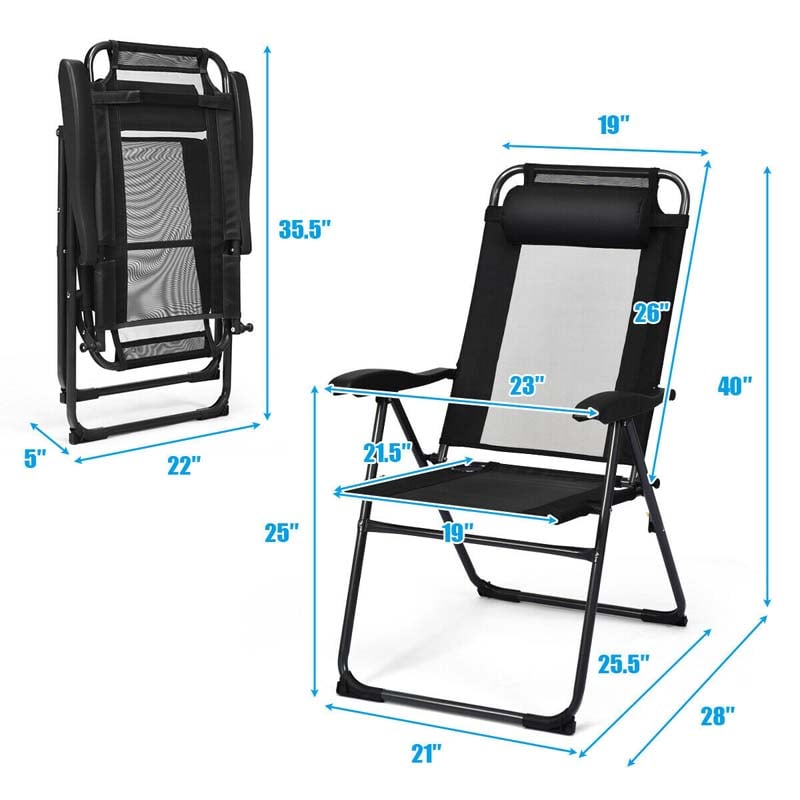 Set of 4 Patio Dining Chairs, 7-Positon Folding Lounge Chairs, Outdoor Portable Sling Chairs with Metal Frame