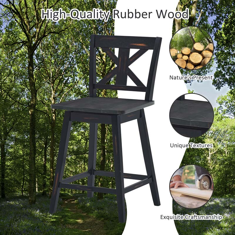 Vintage 360° Swivel Bar Stools Set of 2, Rubber Wood Counter Height Chairs with Back & Non-Slip Foot Pads for Kitchen, Counter, Restaurant